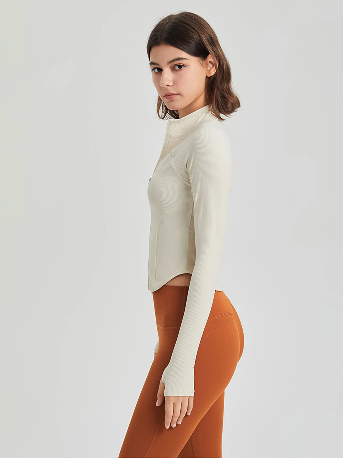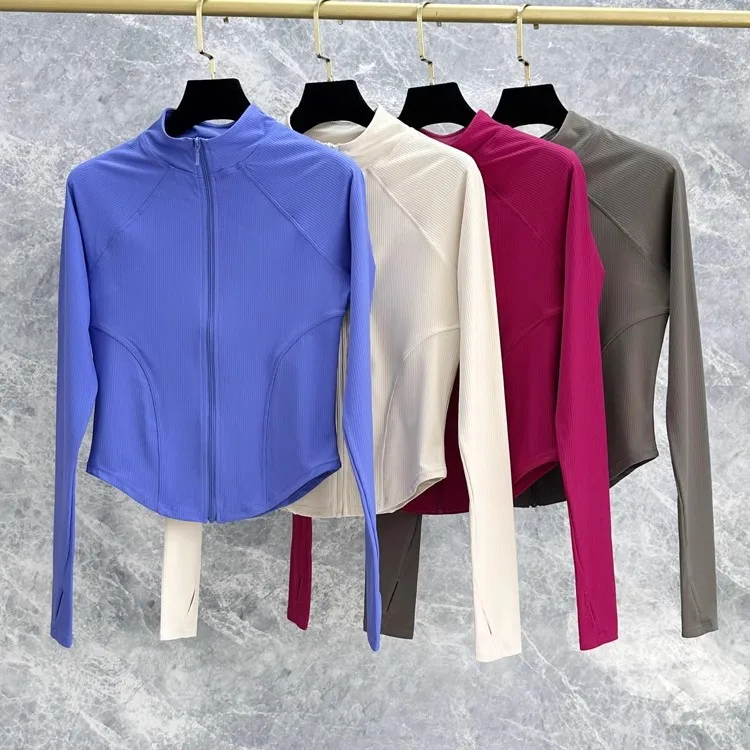 Slimming new stand up collar nude jacket sports top slim fit running casual yoga